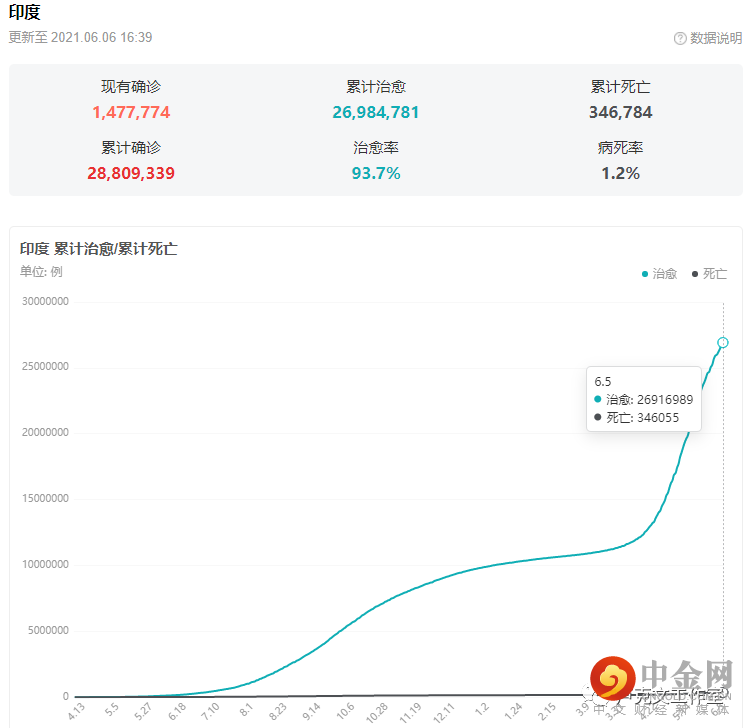 4月1日时,印度因新冠死亡16.3万人,现在已经到了34.3万人,从4月到现在,一共死亡了18万人左右。