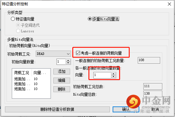 振型叠加法时程分析时,如果有隔震支座,最好用多重Ritz向量法,而且最好勾上“考虑一般连接的荷载向量”。否则,隔震支座轴力可能不准确。