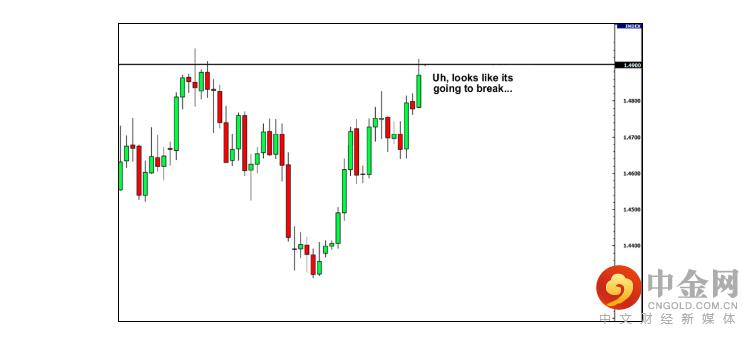 在这种情况下,您可以看到1.4900 水平附近存在阻力。