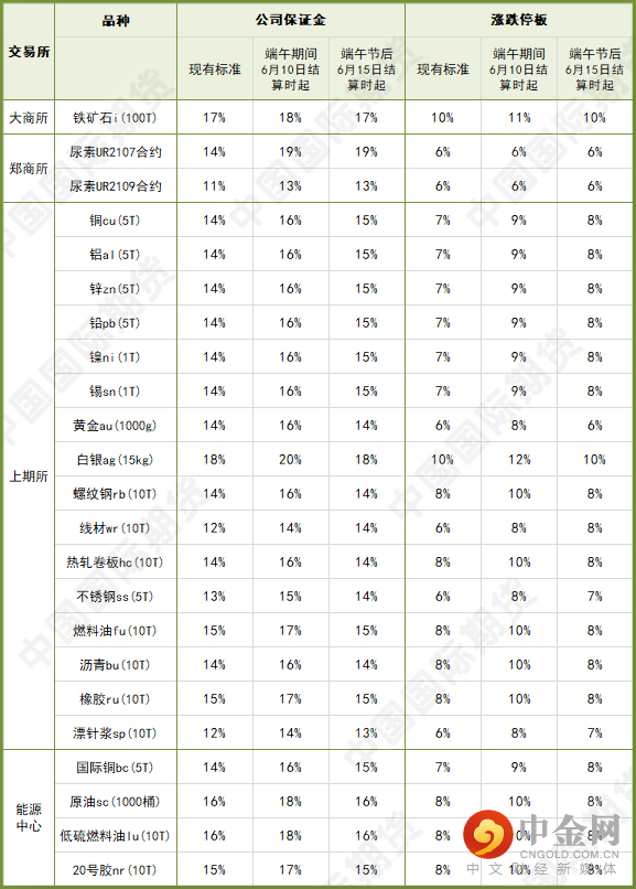 (此外,进入交割月及交割前月的品种,保证金已高于上述标准的仍按原标准收取)