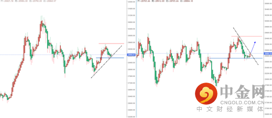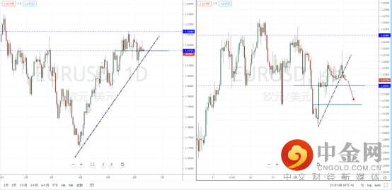 欧美天图:目前行情在美元指数的反复影响,欧美则继续在高位区间纠结徘徊。虽然整体趋势趋于偏多,但从趋势结构有形成头部状态。价格也正测试关键支撑带1.21723附近,从日内4小时级别,价格在区间内受阻下行。如果价格继续下行破位将可能转势空头,静等行情在这个位置附近的表现。
