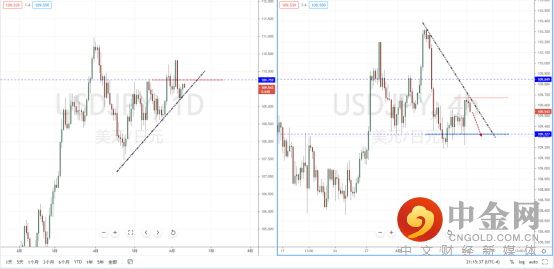 美日天图:目前行情继续处于在鸡肋状态下,虽然趋势趋于在多头阶段,但上方有较重的水平压制带在109.759附近。从日内4小时级别,价格在前期支撑区域反弹后继续受阻。短期可适当关注价格在短期承压后的短线空头机会,但需要注意下方空间幅度,其目标位置参考109.327附近。