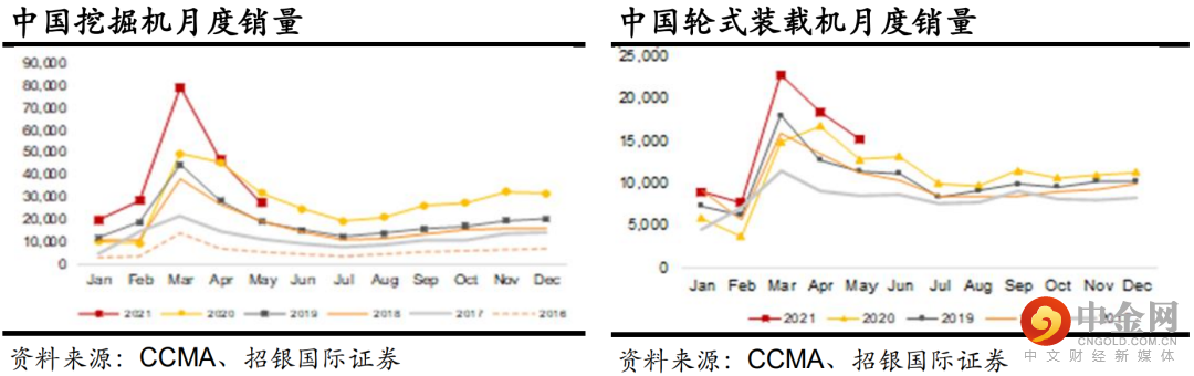 中国轮式装载机销量胜预期,挖掘机销量下跌。根据中国工程机械工业协会,26家主要生产商之挖掘机销量于5月份同比跌14%至2.72万台,是20年2月以来首次下跌,符合我们预期。主要生产商之轮式装载机于5月份同比升17%至1.51万台,胜我们预期,相信受采矿活动带动。我们认为,较弱的挖掘机销量将令三一重工(600031 CH, 持有)和恒立液压(601100 CH, 持有)股价受压,我们并预期挖掘机销量于未来数月仍疲弱,因基数高和机械利用小时数较低。相反,我们维持看好中国龙工(3339 HK, 买入),因轮式装载机销量印证我们对矿业资本开支强劲的看法,股价近期回落主要由于除息,现价相当于6倍21年预测市盈率和10%股息率。