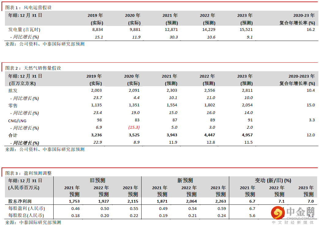 公司6月9日公布超预期的2021年5月份运营数据。风电发电量同比上升60.3%至1,430吉瓦时。今年首5月风电发电量因此同比增长50.2%至6,601吉瓦时,相等于我们全年预测的53.9%,高于去年同期的44.5%实际比率。我们归因于风资源强劲及装机容量增加。