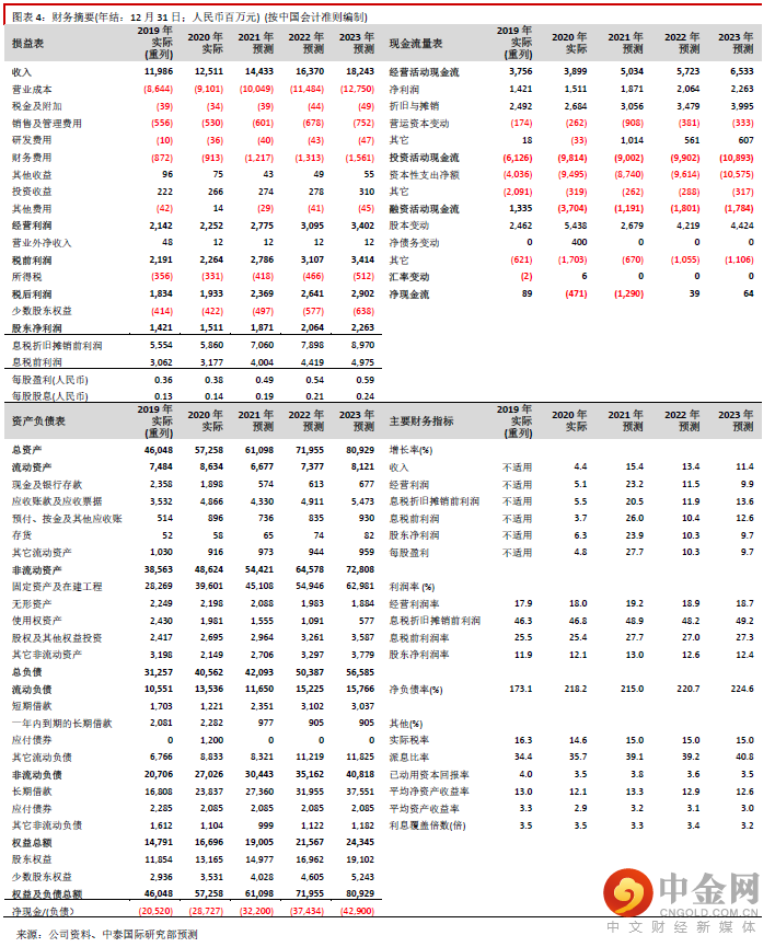 基于上述超预期情况,我们提升运营假设,并分别上调2021-23年股东净利润预测6.7%、7.1%、7.0% (见图表1-3)。