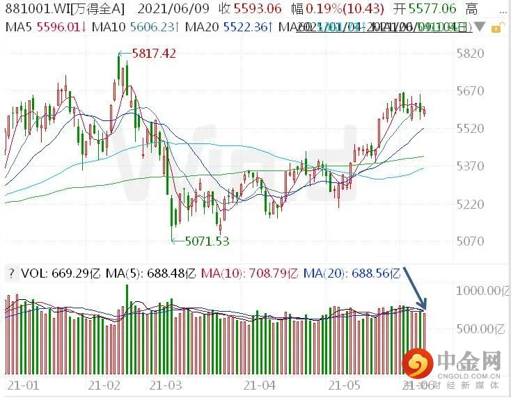 6月9日,两市股指震荡企稳,成交额较前一个交易日缩减千亿元。