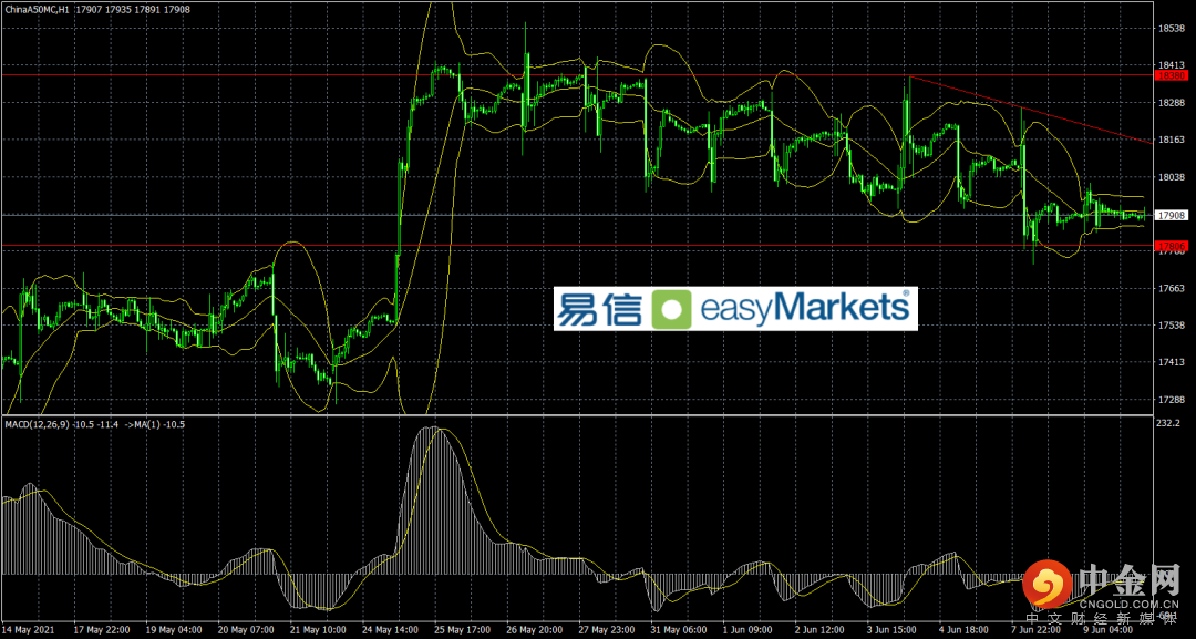 技术看,A50压力是18100附近,突破看18300附近,下方支撑是17800附近。指标看布林线开口横盘,而MACD在低位震荡,短线方向不明。交易策略,关注上下方位置重要性,尝试高抛低吸交易,突破则反手追单。