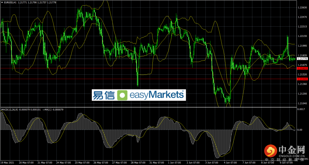 技术上,欧元下方支撑是1.214/6区域,破位看1.211附近,上方压力可能是1.22附近。指标看布林线开口横盘,MACD在O轴附近震荡,短线方向不明。交易策略,关注上方位置重要性,尝试逢高空交易,突破则空头离场。