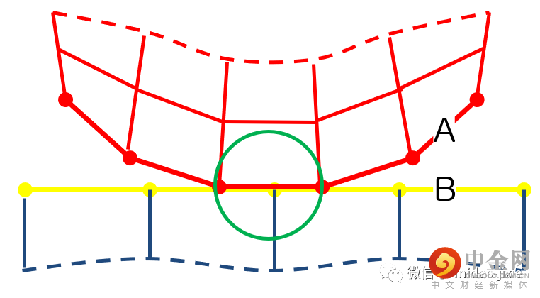 以A面上每个单元的中心为圆心、以接触容差为半径画一个圆,B面中包含在这个圆内的区域即与A面发生接触关系。