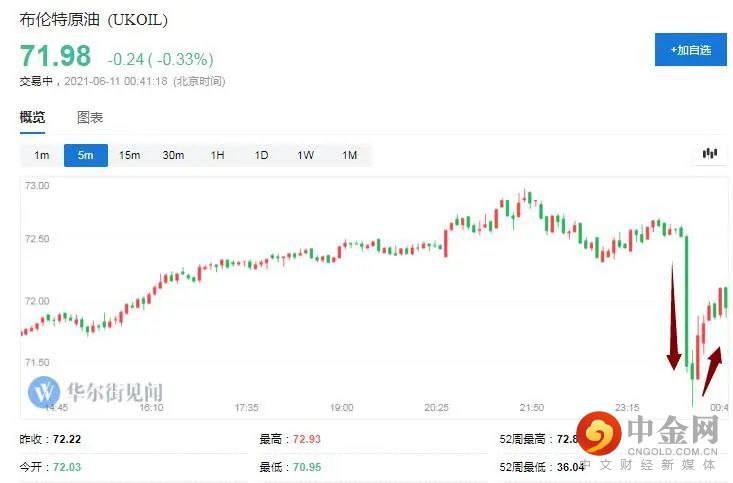 截至发稿,WTI原油重返70美元上方,报70.11美元;布伦特原油重返72美元上方,报72.43美元。
