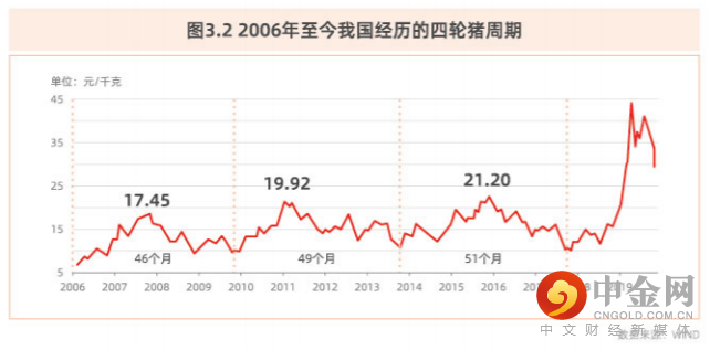 图9:2006年至今我国经历的四轮猪周期 单位:元/千克