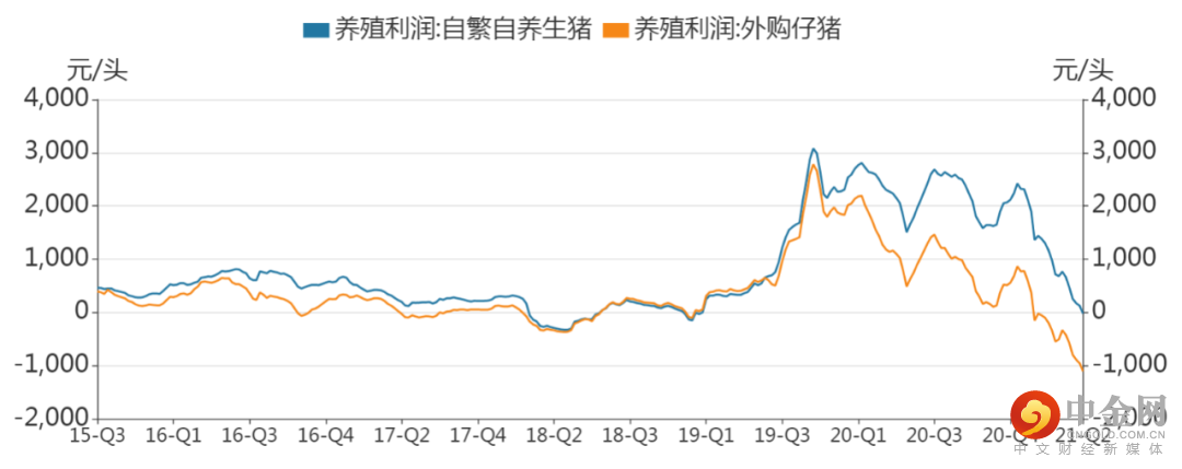 养殖利润方面,猪价已经全面跌破了养猪成本线,养殖户恐慌情绪下,市场生猪出栏呈现踩踏现象,不管是规模化猪企还是个体养殖户,都在抛售抓紧出栏变现。有统计数据显示,生猪自繁自养的利润已缩水到了174.25元/头,比起年内最高点大跌了92.8%,如果计入防疫成本等,已经陷入亏损局面。