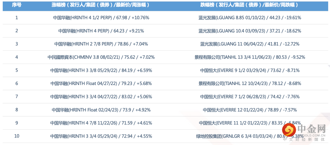信用方面:本周针对市场此前流传的负面信息,恒大集团发布声明称,针对个别项目公司存在极少量商票未及时兑付的情况,集团高度重视并安排兑付。公司生产经营一切正常,成立25年来从未出现借款利息晚付、本金逾期归还的情况。全周恒大集团多笔美元债券现较大跌幅。