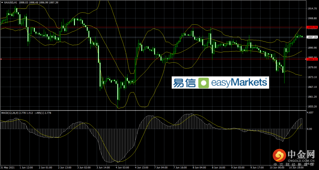 昨日非美和黄金走势大幅波动,起先美国公布的5月CPI数据好于市场预期,一度引发非美和黄金的快速下跌,但之后在抄底盘的支持下,非美和黄金触底反弹,黄金不仅抹去日内跌幅而且还挑战1900美元附近压力。