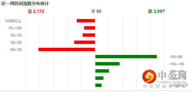 本周个股表现涨跌各半,这也符合基本持平的大盘走势。