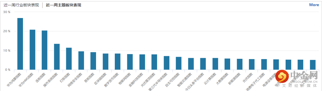 从概念板块涨幅来看,华为概念板块占据了涨幅榜的绝大多数排位,另外,区块链、光伏屋顶、智能交通等也都有所表现。