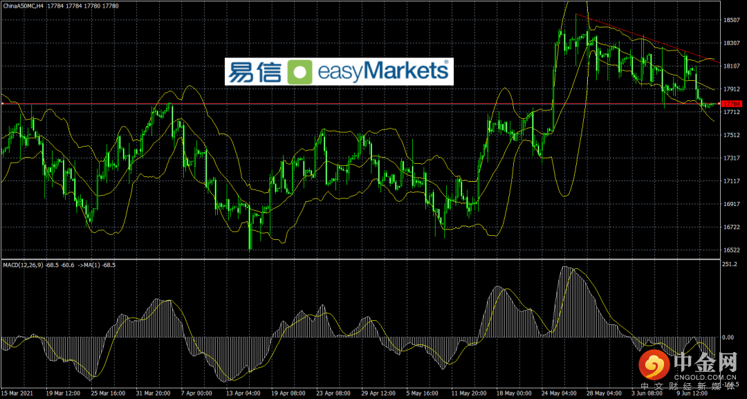 技术上看A50指数目前第一支撑是17800附近,跌破17700,将面临加速回调压力。上方支撑是17900,18100附近,形态似乎是下降三角整理格局。指标看布林线开口略向下,MACD在低位徘徊。交易策略,考虑到下方支撑重要性,避免低位追空,破位前可以尝试高抛低吸交易,突破则反手追单交易。