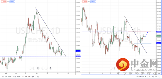 美瑞天图:目前行情在底部区间纠结后止跌反弹,并且筑底迹象有确立。价格也处于在下降趋势附近测试中,下方水平支撑带在0.89257附近。从日内4小时级别,价格在短期突破下降趋势线后进入调整阶段,可适当关注价格调整后继续上行的多头机会,上方目标位置参考0.90110附近。