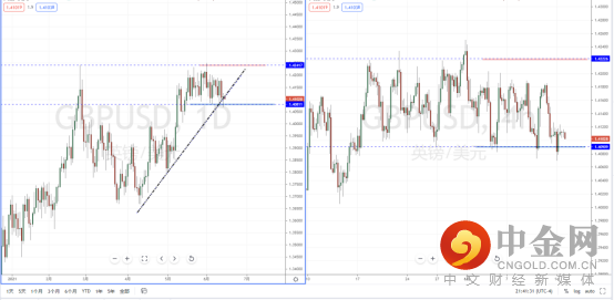 镑美天图:短期价格继续在下行回测中,虽然整体格局趋于偏多头。但由于上方压制较重,如果破位将可能转势为空,可适当关注价格在上升趋势线与水平支撑带1.40811附近。从日内4小时级别,适当关注价格在此区间内的表现。如果起稳则可能继续上行,反之,将破位转势。