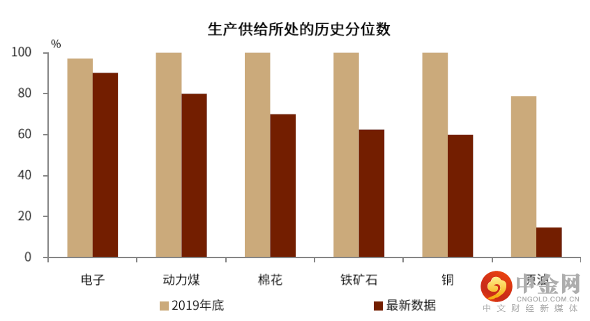 [5] 电子产品是中国台湾、韩国生产增速的历史分位数加权,动力煤是澳大利亚产量历史分位数,棉花是巴西、印度、美国产量合计的历史分位数,铁矿石是澳大利亚和巴西发货量的历史分位数,铜是秘鲁产量的历史分位数,原油是美国、欧佩克产量合计的历史分位数。数据主要是从2011年初至最新数据(铁矿石是2014年起,铜是2012年起),其中煤炭和棉花是年度数据,截至2020年;其余为月度数据,截至2021年4月。