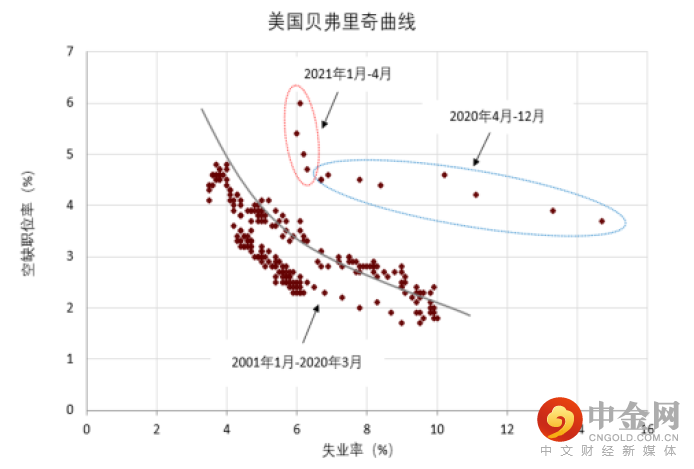 供给冲击的一个重要体现是资源再配置短期带来劳动市场供需错配。供给冲击较需求冲击更容易导致资源或要素再配置,近期A股不同板块的员工人数增速分化明显,民工就业半径也较疫情之前缩小,表明我国劳动力正经历行业与区域再配置。中低端劳动力市场求人倍率和失业率同时上升,民工职业培训比率创多年新高,均表明劳动市场供需错配已经显现。美国劳动力再配置效应较2008年次债危机后更为显著,而供给冲击叠加财政刺激亦导致其劳动市场供需错配比我国更为显著,劳动参与率也较其他主要经济体下降更多。