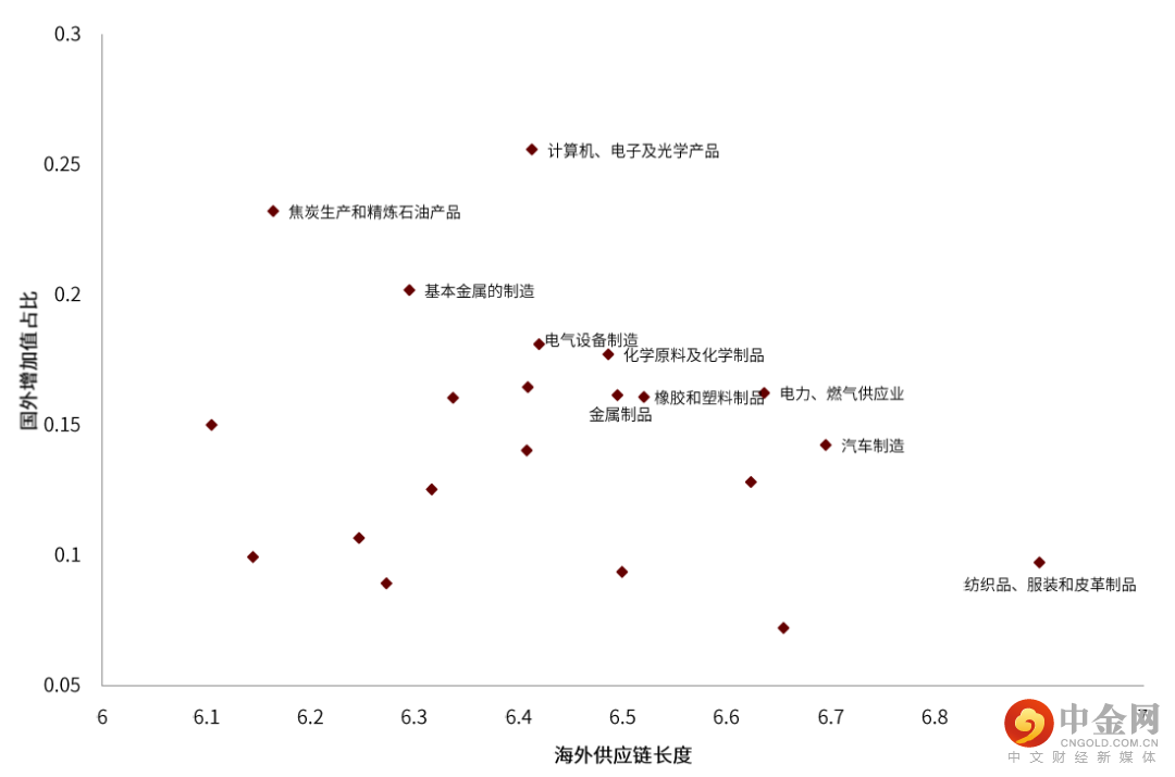 图表20:从海外供应链长度和海外增加值占比两个维度看对海外供应链的依赖