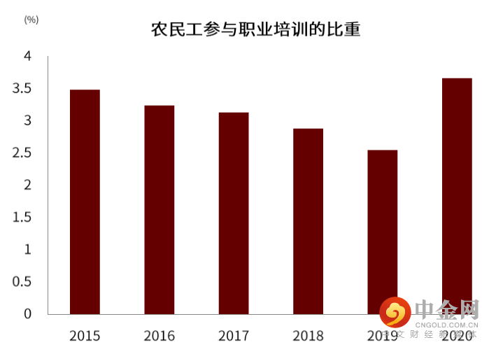 农民工技能培训需求明显增多。农民工参与职业培训的比重从2015年的3.5%下降到2019年的2.5%,但是这一比重在2020年出现了显著上升,达到了3.7%,创近年来新高。相比与在原行业直接就业,从学习一项新的技能到走上新的岗位可能需要一段时间、也面临一定程度的摩擦。