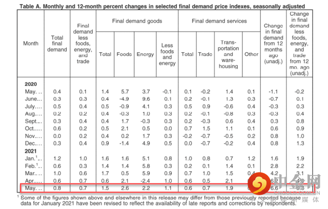 继美国5月CPI创08年来最高之后,另一个衡量通胀的指标PPI继续“爆表”。