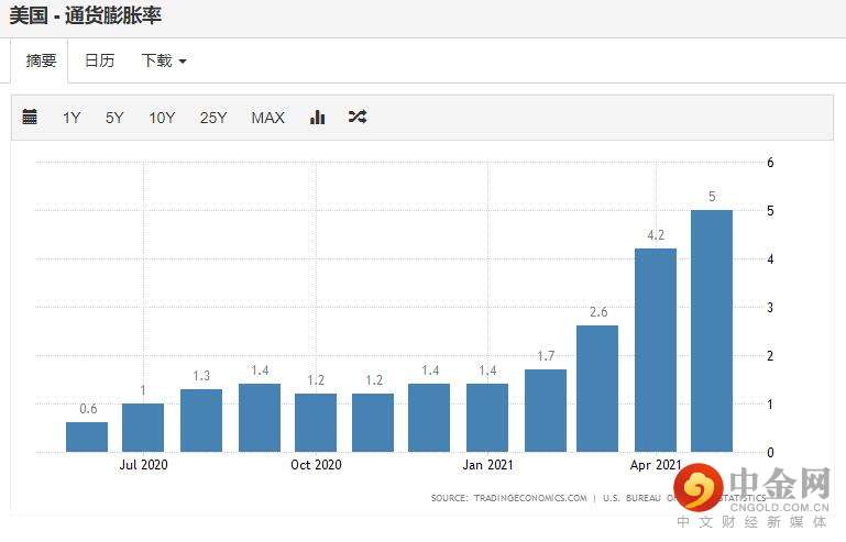 从整个事态的表现看,美联储此次会议的背景是,越来越多的证据表明,随着美国经济从疫情中复苏,价格压力在不断加大,而疫苗的推出让企业在某种程度上恢复了正常运转。但事实是否有现实情况一样呢?官方表示通胀是暂时的。在美国劳工部上周发布的CPI数据显示,5月份生活成本大幅上涨,并将通胀率推高至5%,近几年来的高点,反映出美国人面临的物价普遍上涨。