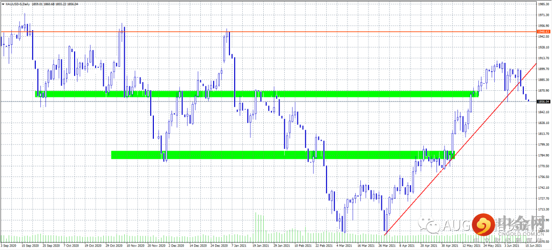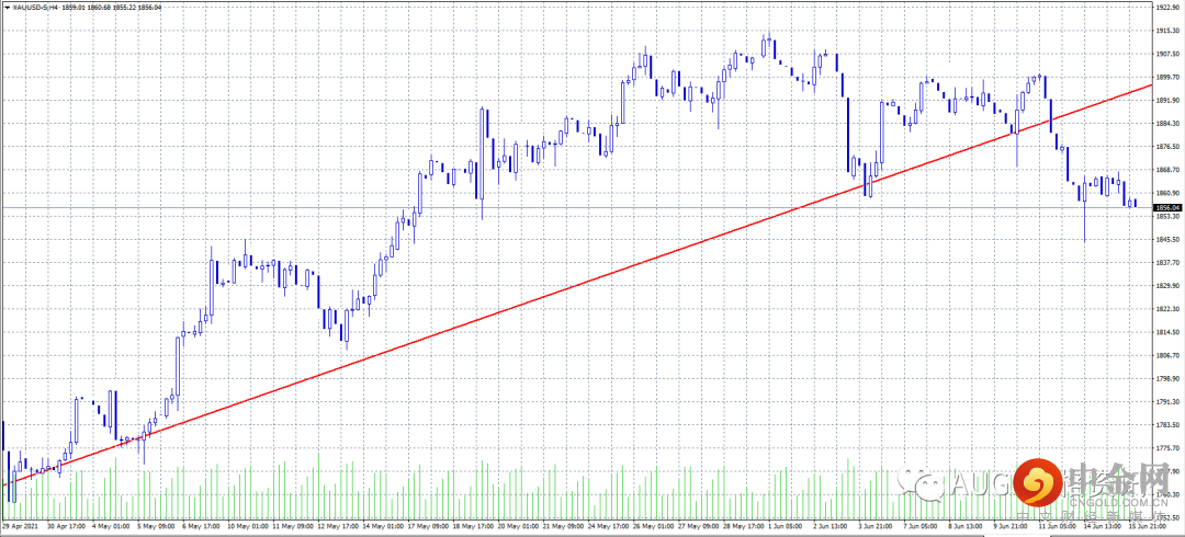 4) 路透6月15日 - 金价周二下跌,美元走强,市场评估美国联邦储备委员会(美联储/FED) 本周可能暗示最终缩减刺激政策的可能性。1755 GMT,现货金下跌0.5%,至每盎司1,855.99美元。美国黄金期货结算价下跌0.5%,报每盎司1,856.40美元。分析师Edward Meir称, “对通胀上升的紧张情绪与日俱增,贵金属市场的感觉是,各国央行必须开始对这些通胀压力做出更积极的反应。”