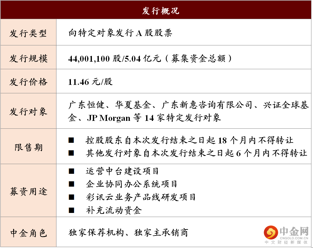 6月15日,彩讯科技股份有限公司(以下简称“彩讯股份”或“公司”,股票代码:300634.SZ)完成向特定对象发行A股股票(以下简称“本次发行”或“本项目”),中金公司在本项目中担任独家保荐机构和独家主承销商。