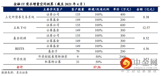 2019-2020年,恒生电子下游主要客户公募基金、券商行业收入持续提升,叠加科创板推出、创业板注册制等多项资本市场改革政策频出,恒生电子下游客户IT预算持续提升。2021年,买方+卖方市场需求预计超过2019年科创板改革需求以及2020年创业板改革需求,增量市场空间约37亿元。此外,2021年6月11日贝莱德集团在华公募展业资格正式获批,东北证券认为后续有更多外资进入中国开展公募业务,提升恒生电子客户覆盖面并有望加速国内金融机构系统建设步伐。