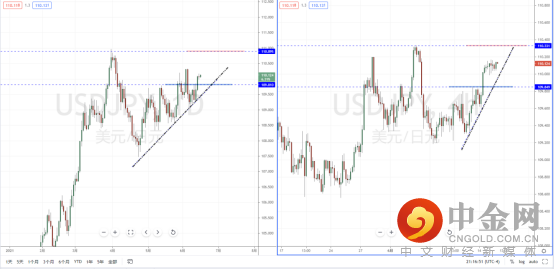 美日天图:短期价格在有效突破前期压制后继续小幅上行,虽然整体格局处于在多头阶段中,下方有上升趋势线的支撑作用。但不宜追多行情,从日内4小时级别,价格即将临近前期高点附近。适当关注价格调整后继续向上的多头机会,上方区间目标位置参考110.311附近。