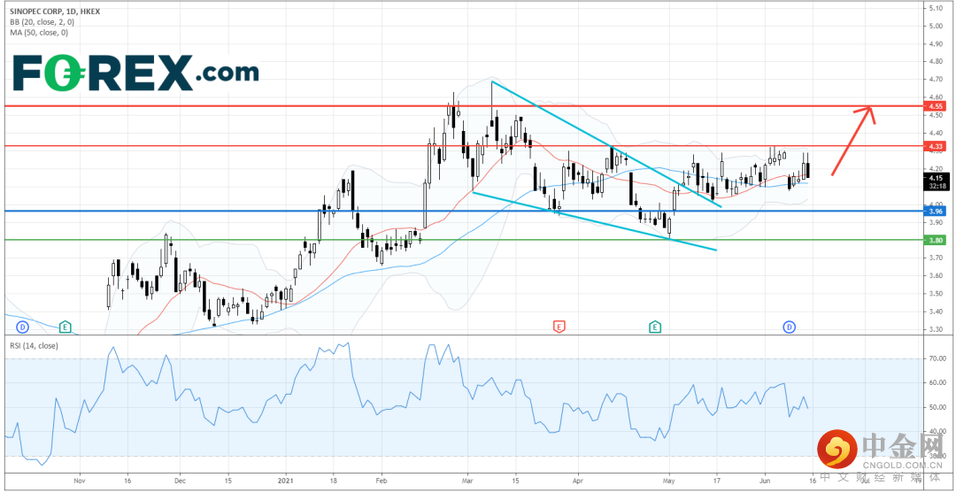 只要主要支持(止损)位3.96港元守在下方,股价有望突破近期的阻力位4.33港元后升至4.55港元。