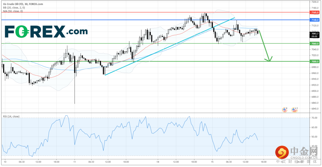 只要美国原油CFD在主要阻力 (止损) 位7,140点之下操作,料将调整至7,060点和7,000点。