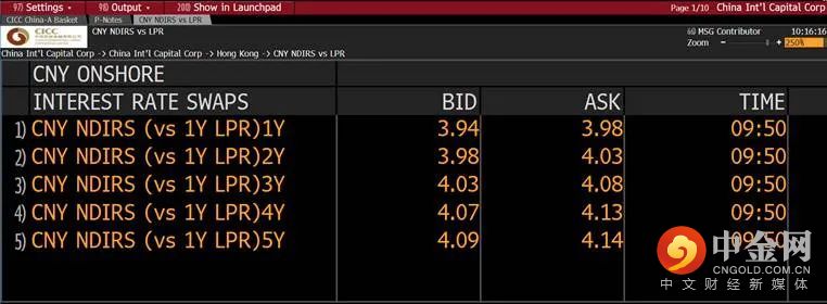 自本周起,中金公司香港子公司通过Bloomberg终端发布人民币LPR 非交割利率互换(LPR NDIRS)报价,成为境外市场首家提供LPR NDIRS双边连续可执行交易报价的机构。相关报价可在{CICH <GO>} 或{GDCO 7899 4 <GO>} 以及相关ticker的ALLQ页面查询。
