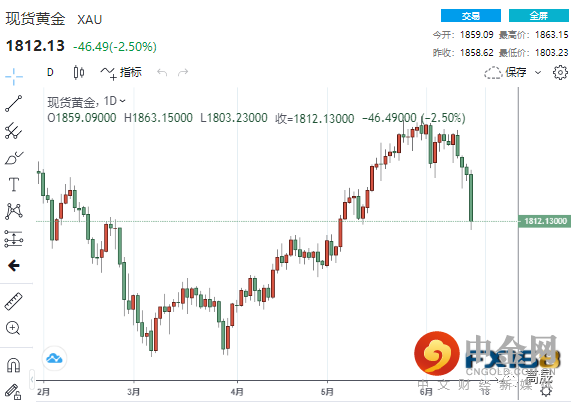 FX168财经报社(北美)讯 在美联储官员预测大流行后的首次加息将提前至2023年之后,金价周三(6月16日)遭遇疯狂抛售大幅下跌。