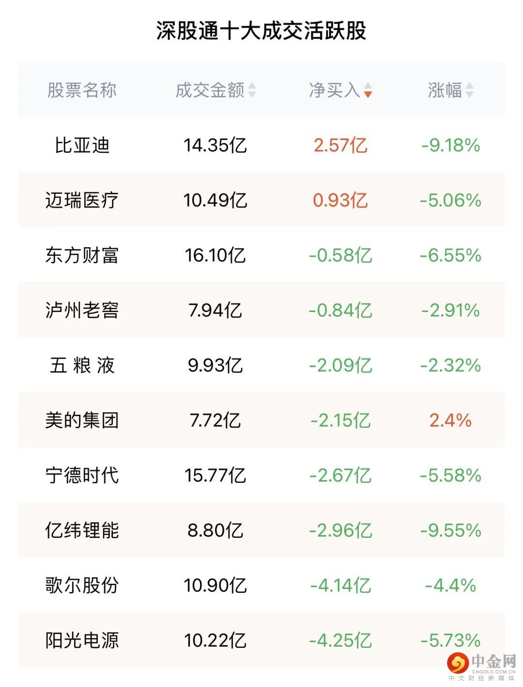 北向资金6月16日净卖出4.05亿元,其中沪股通净流出1.99亿元,深股通净流出2.06亿元。比亚迪、中国平安、伊利股份分别获净买入2.57亿、2.56亿、1.98亿元。