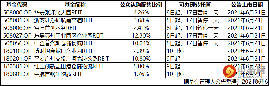 就在不久前的5月31日,首批公募REITs(Real Estate Investment Trusts,不动产信托投资基金)盛大募集,首批9只获批产品主要投向高速公路、仓储物流、产业园区等基础设施领域,在超高的市场关注度下,9只均首日售罄并开启末日比例配售,面向公众募集的部分最终确认的配售比例都非常低。