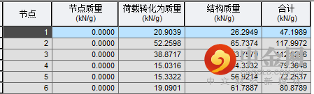 (5)查看每个节点的质量总和包括荷载转换质量和结构本身质量:查询>质量统计表格