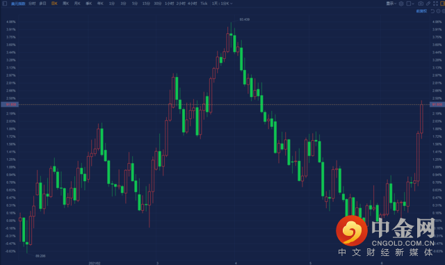 与此同时,美元指数一路上涨。截至发稿,美元指数报91.93,本周已经上涨超过1.5%,在周三和周四两日更是连续拉出阳线。