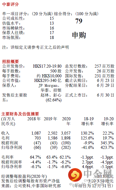 基石投资者:基石方面,引入瑞银基金、汇添富基金、广发基金、南方基金管理及乾元复兴5家投资者,合计认购约1.6亿美元,假设按照发售价范围上限定价且未行使超额配股权,合计占发售股份约23.6%。
