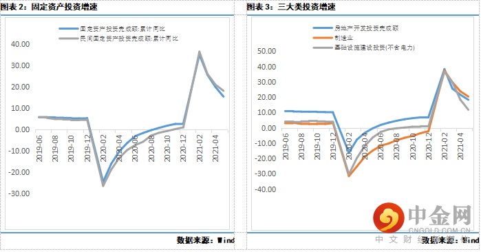 1-5月份,全国固定资产投资累计同比增长15.4%,低于预期的17%,低于前值的19.9%;比2019年1—5月份增长8.5%,两年平均增长4.2%(较前值回升0.3个百分点)。其中,民间固定资产投资同比增长18.1%。从环比看,5月份固定资产投资(不含农户)增长0.17%(较前值回落1.32个百分点)。