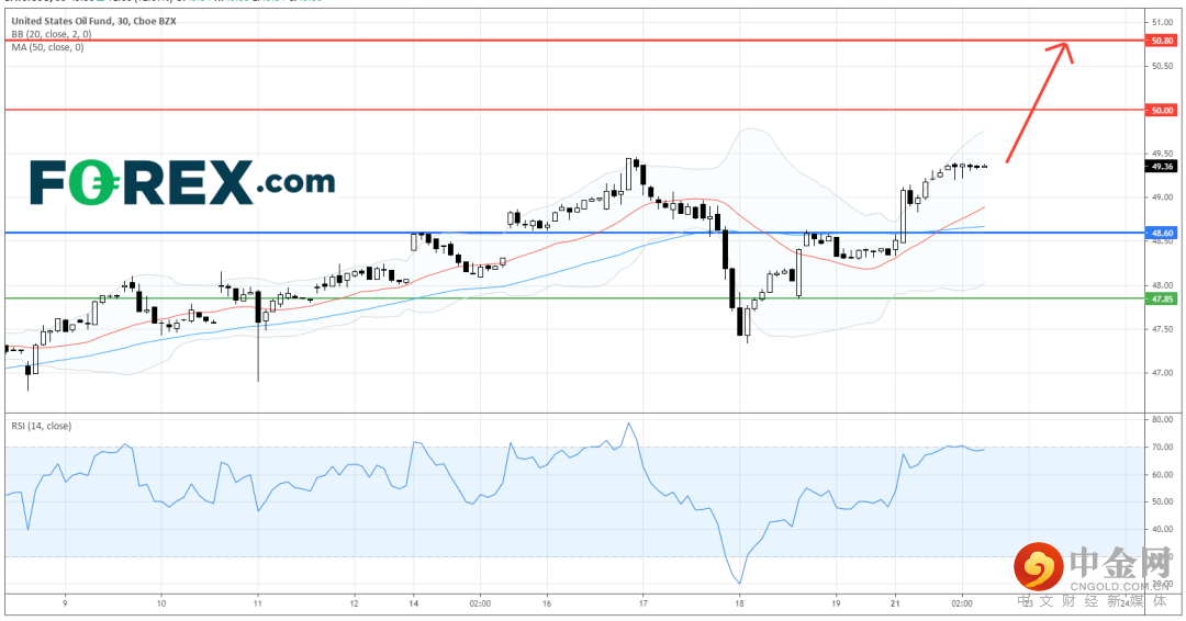 升势持续,上望50.00美元