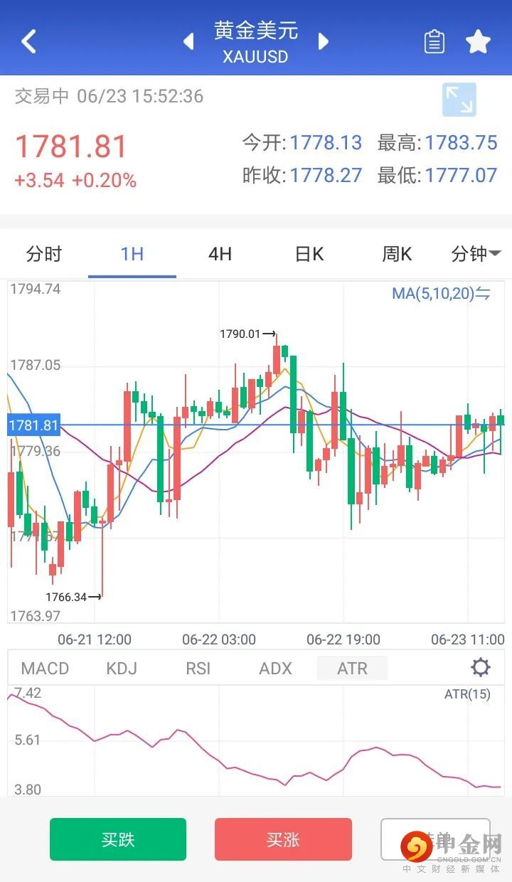 周二,现货黄金窄幅交投,日内一度触及1790美元关口,随后震荡下行。今天亚洲交易时段,市场整体波动不大,亚股涨跌不一,美元尾盘保持坚挺,黄金继续在1780附近窄幅震荡。从1小时走势图来看,多空双方动能也都不明显,有分析指出,金价想要看涨需要先突破1800美元。
