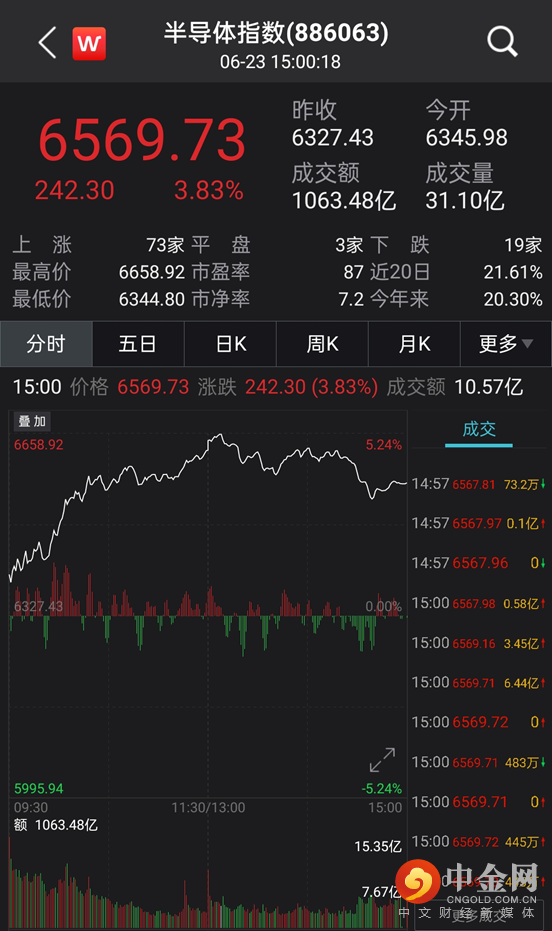 周三(6月23日),沪深两市延续反弹,三大指数齐涨。截至收盘,上证指数涨0.25%报3566.22点,深证成指涨1%,创业板指涨1.13%报3318.95点,万得全A涨0.66%。