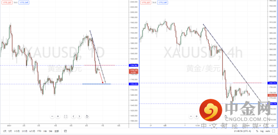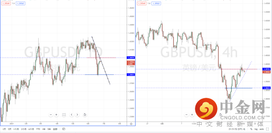 镑美天图:短期价格继续在冲击上方下降趋势线的压制带,与水平压制带1.40070附近。虽然整体格局趋于偏空阶段中,但近期价格反弹的力度较强,从日内4小时级别,价格在短期压制附近承压。可适当关注趋势在此区间的表现,如果起稳上行突破,将可能转势为多。反之,则继续进行区间阶段调整。