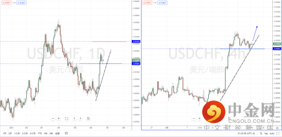 美瑞天图:短期价格继续在关键支撑带0.91606附近徘徊调整,下方有上升趋势线的支撑作用,整体格局继续保持多头流向。由于趋势调整幅度尚未结束,不宜追多行情。从日内4小时级别,则继续关注价格测试支撑带附近起稳后的多头机会,上方目标位置参考0.93165附近。