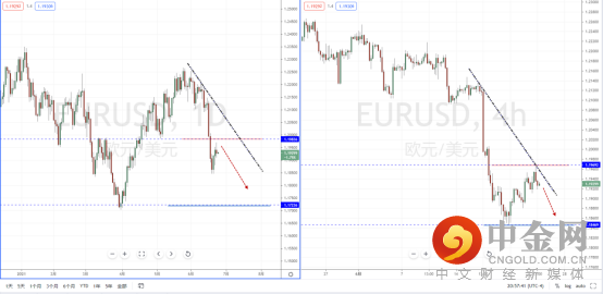 欧美天图:目前行情继续反弹回测上方压制区域,整体趋势继续处于在空头阶段中,上方水平压制带在1.19836附近。从日内4小时级别,可适当关注价格回测多重压制区受阻后的空头机会,下方目标位置参考1.17236一带。