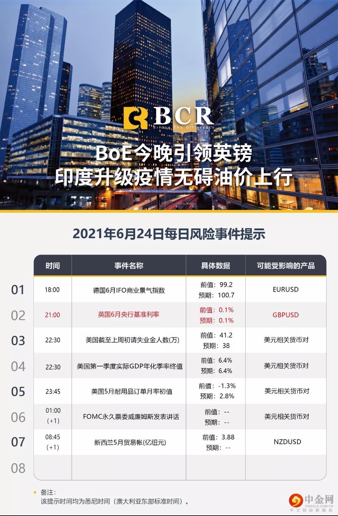 【百汇BCR今日市场分析2021.6.24】BoE今晚引领英镑 印度升级疫情无碍油价上行